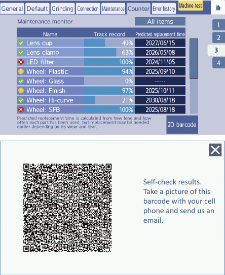 自檢功能在出現(xiàn)故障時自動診斷所選組件。檢測結(jié)果以二維碼形式顯示,可發(fā)送給授權(quán)經(jīng)銷商以獲取快速服務支持。